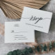 Diese elegante schwarze Kalligrafie einfache RSVP-Karte ist perfekt für eine einfache Hochzeit. Das neutrale Design besticht durch eine minimalistische Karte, die mit romantischer und skurriler Typografie dekoriert ist.