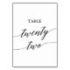 Dieser elegante schwarze Kalligraphie-Tisch mit 22 Tischnummern ist perfekt für eine einfache Hochzeit. Das neutrale Design besticht durch eine minimalistische Karte, die mit romantischer und skurriler Typografie dekoriert ist. Die Karte druckt auf der Vorder- und Rückseite (beidseitig). Andere Tischnummern in der Sammlung werden separat verkauft.
