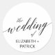 Diese eleganten, schwarzen kalligraphischen Hochzeitsstipps sind perfekt für eine einfache Hochzeit. Das neutrale Design zeichnet sich durch einen minimalistischen Aufkleber aus, der mit romantischer und skurriler Typografie dekoriert ist. Personalisieren Sie das Etikett mit den Namen der Braut und des Bräutigams.