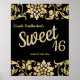 Elegante Black Gold Blume Sweet 16 Geburtstag Poster