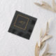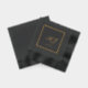 Diese elegante, in einer Hochzeit präparierte Servietten sind mit einem echten Goldfolien-Kalligrafieschrift und einem goldenen Rahmen auf einem einfachen schwarzen Hintergrund ausgestattet. Entworfen von Susan Coffey.