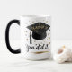 Mit dieser eleganten 15oz-Morphing-Tasse können Sie den Moment stilvoll gestalten! Mit einer klassischen schwarzen Kappe und glänzenden goldenen Sternen zeigt es stolz "You do it", wenn heiße Flüssigkeit gegossen wird. Ein perfekter Sake für den klassischen Absolventen.