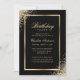 Elegante Schwarz-Gold-Geburtstagsfeier mit Veranstaltungsdetails in einem goldenen Rahmen mit goldenen Konfetti. Einladung zum Geburtstag in Schwarz und Gold. Personalisieren Sie diese Vorlage ganz einfach an jede Geburtstagsparty.