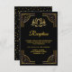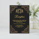 Elegante Black Gold Lotus Blume Hochzeit Empfang Begleitkarte