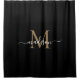 Elegante Black Gold Monogram Feminine Script Name Duschvorhang