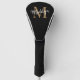 Elegante Black Gold Monogram Feminine Script Name Golf Headcover