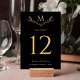 Elegante Black & Gold Monogram Wreath Wedding Tischnummer