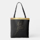 Diese personalisierte typografische Hochzeitstasche für die Brautmutter zeichnet sich durch ein schlichtes kalligrafisches Design moderner Imitate aus, die das Goldskript "Mutter der Braut" auf schwarzem Hintergrund mit einer obersten Grenze des Imitats Gold ausliest. Entworfen von Susan Coffey.