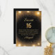 Elegante Schwarz und Gold Sweet 16 Dankeschön-Karte mit glitzernden goldenen Akzenten und stilvoller Typografie. Ideal für eine glamouröse Geburtstagsfeier. Vollständig anpassbar mit Name und Dankeschön Nachricht.