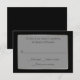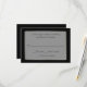 RSVP-Karte für alle Zwecke in schwarz, mit Grafiken aus einem silberfarbenen, weißer, halbtransparenter Text-Bereich mit benutzerdefiniertem schwarzen Text. Die Größe ist so klein, dass sie mit allen gängigen Einladungsgrößen übereinstimmt. Passen Sie den Text an Ihre Bedürfnisse an.