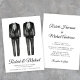 Elegante und schicke Homosexuelle Hochzeitseinladung mit zwei schwarzen Tuxedo Aquarellen und Ihren Vornamen in einem stilvollen Skript. Auf der Rückseite fügen Sie alle Ihre Hochzeitsdetails in moderne Typografie.