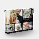 Moderner Foto Block zur Feier Ihrer Hochzeit mit einer 5-Foto-Collage, Ihren Namen und Hochzeitsdatum in eleganter weißer Typografie vor einem schwarzen Hintergrund.
