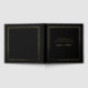 Das elegante und formelle Gästebuch für Hochzeitsgäste, das mit einer echten Goldfolie auf einem raffinierten schwarzen Hintergrund gestaltet wurde. Dieses luxuriöse Gästebuch besticht durch ein modernes minimalistisches Design, das durch einen doppelten Rahmen in Goldfolie hervorgehoben wird. Personalisieren Sie dieses exquisite Hochzeitszubehör mit Ihren Details in schicken Schriften und Schriften. Der Rücken ist schwarz und mit Goldfolie geschmückt, auf die Vornamen und das Hochzeitstermin des Paares abgestimmt und verleiht Ihrem besonderen Tag eine persönliche Touch. Die Rückseite des Buches spiegelt die Vorderseite mit zwei passenden Rahmen aus Goldfolie wider und schafft so einen zusammenhängenden und stilvollen Look. Für zusätzliche Vielseitigkeit können Sie die Folie leicht in Silber oder Rose umtauschen, um sicherzustellen, dass sie Ihr Hochzeitssmotiv perfekt ergänzt. Dieses Gästebuch ist nicht nur ein schöner Sake, sondern auch eine zeitlose Ergänzung zu Ihrer Hochzeitsfeier.