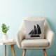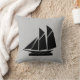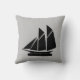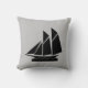 Elegante moderne schwarze Yacht auf hellgrauem Throw Kissen.