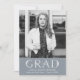 Elegante botanische Graduiertenfeier mit "Grad" in weißer Blumentypografie mit einem schieferblauen Hintergrund. Personalisieren Sie die Front der Blumenstudium Party lädt mit dem Foto, Name, Schule und Abschluss des Absolventen Jahr. Die Schieferblau Graduierungsparty lädt Reverses ein, um Ihre Abschlussfeierdetails zu zeigen.