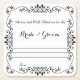 Hübsche schwarze Schriftrolle, filigrane Blume. Niedliche Idee für Ihren Hochzeitsempfang. Ändern Sie den Text, um alles zu lesen, was Ihnen gefällt. Die Hintergrundfarbe kann in eine beliebige Farbe geändert werden.