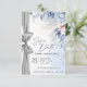 Elegante blaue Blumen-Save-The-Date-Karte mit Silb Begleitkarte