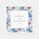 Diese Hochzeitstücher weisen ein elegantes Blumenmuster mit einem Rand aus blauen und roten Rosen auf, akzentuiert durch grüne Blätter auf einem knackig weißen Hintergrund. Das Design enthält ein zentrales Quadrat für individuellen Text in einer klassischen Serifenschrift, perfekt für die Personalisierung Ihres besonderen Tages. Der traditionelle und dennoch moderne Stil schafft eine ausgeklügelte und festliche Stimmung, ideal für Hochzeiten oder formelle Veranstaltungen. Die detaillierten Illustrationen bieten eine realistische Darstellung und unterstreichen den zeitlosen Reiz dieser wunderschön gefertigten Servietten.