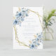 Erleben Sie einen atemberaubenden ersten Eindruck mit dieser eleganten blauen, geometrischen Rahmen Blütenhochzeit. Dieses Design mit einer raffinierten Mischung aus staubblauen und marinierten Blumen ist wunderschön gerahmt in einem modernen geometrischen Goldrand und fügt eine Touch von Eleganz und Romantik hinzu.