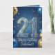 Feiern Sie einen wichtigen Meilenstein mit dieser eleganten Geburtstagskarte zum 21.! Das festliche Layout zeigt atemberaubende, funkelnde 3D-Glitterzahlen, die ihr einundzwanzigstes Jahr markieren, umgeben von realistischen goldenen und navyblauen Ballons. Vor einem magischen, sternenklaren Nachthimmel mit blauer Hintergrundfarbe ermöglicht die elegante goldene Schrift Ihnen, den Namen des Geburtstagsjungen leicht hinzuzufügen. Ein anspruchsvolles, modernes und männliches Design, perfekt für den unvergesslichen 21. Geburtstag eines Sohnes, Bruders, Neffen oder Freundes.