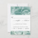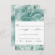 Elegante RSVP-Karte mit exquisitem blaugrünem Aquarellhintergrund sowohl vorne als auch hinten. Wasserfarbe in einer zarten Mischung aus Türkis, aquamarin, Nebel, Eisblau, Salbei, Eukalyptus, Blau, Minze und Graublau. Möglichkeit, den Abschnitt zu den Mahlzeiten für jede andere Nachricht oder Frage zu ändern. Verwendung moderner handschriftlicher Kalligraphie und Blocktypografie. Teil unserer Kollektion "Blue Green Watercolor, Fine Zeichnend Botanical".