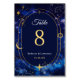 Mit diesen eleganten Blue Celestial Wedding Tischnummern führen Sie Ihre Gäste zu ihren Sitzplätzen im himmlischen Stil. Mit einem dunkelblauen Hintergrund, der an einen Sternenhimmel erinnert, ist jede Karte mit einem feinen, zarten Rahmen geschmückt, der eine Touch von Eleganz und Anmut verleiht. Die kühne Tischnummer hebt sich deutlich von der Mitte ab und verbindet Funktionalität mit kosmischem Charme. Diese Tischnummern sind ideal für Abend-Hochzeiten, Stargazer-Themen oder himmlisch inspiriert Feste und sorgen für ein traumhaftes und elegantes Ambiente im Empfang.