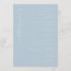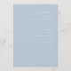 Dieses Hochzeitsprogramm verfügt über ein minimalistisches und elegantes Design mit einem weichen pastellblauen Hintergrund, das eine ruhige und friedliche Atmosphäre schafft. Das Layout ist zentriert und vertikal ausgerichtet, was Klarheit und Einfachheit betont, während die Typografie kursive und serifenlose Schriften kombiniert, um Raffinesse und Lesbarkeit zu erhöhen. Perfekt für Paare, die ein zeitgemäßes und formelles Aussehen suchen, ermöglicht diese Vorlage die Anpassung von Namen, Daten und Orten, was sie ideal für die Personalisierung Ihres besonderen Tages macht. Das Fehlen zusätzlicher Motive hält den Fokus auf den Text und sorgt für eine saubere und moderne Ästhetik, die Ruhe und Feier vermittelt.