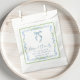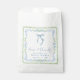 Elegante Geschenktüten für die Brause-Party mit großem millennium-inspirierten vintage-grünen Muschel- und blauen floralen Wasserfarbrahmen, einer zarten blauen Coquette-Schleife-Wasserfarbe, "Liebe + Danke" in eleganter blauer Kalligrafieschrift dargestellt und dem Namen der Braut und dem Datum der Brause in klassischer Serif-Typografie.