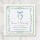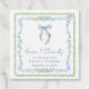 Elegante Brautdusche-Dankeschön-Geschenkanhänger mit grandmillenial-inspirierten vintage-grünen Muschel- und blauen floralen Aquarellrahmen, einer zarten blauen Coquette-Schleife Aquarell, "Liebe + Danke" präsentiert in einer eleganten blauen Kalligrafieschrift und dem Namen der Braut und dem Datum der Dusche in klassischer Serif-Typografie.