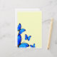 Hübsches Briefpapier getan mit einem hellgelben Hintergrund und reizenden hellen blauen Schmetterlingen in der links unteren Ecke. Sehr elegantes und stilvolles Schauen. Großes persönliches stationäres für irgendeinen Tag.