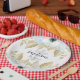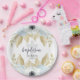 Und Chic, dieser kundenspezifische elegante blaue und weiße Blumenquerbaby-Taufe-Papier-Teller sind der perfekte Zusatz stilvoll, zum der Taufe Ihres Babys zu feiern, die Taufe oder die erste heilige Kommunion. Grauer Text "Jakob" kann geändert werden, um den Namen Ihr Kindes zu passen und die Typografie "06.06.19" kann Set zum Feierdatum sein.