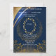 Elegante blaue und goldene Hochzeitseinladung mit Einladung
