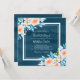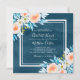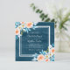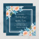 Moderne quadratische Hochzeitseinladung mit Aquarellfarben-Rose, sanften Blumen und Grünpflanzen auf marineblau-blauem Aquarell. Ideal für elegante Hochzeiten mit zeitgemäßem Ambiente.
