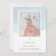 Elegante Blaue Wasserfarbe und Foto Taufe Einladung