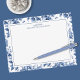 Ein elegantes blau-weißes Vintage-Rosenmuster ziert diese Notizkarte. Personalisieren Sie sie mit Ihrem Namen für einzigartige und schöne Schreibwaren. Entworfen für Sie von Blackberry Boulevard.