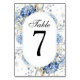 Elegante blaue Wildblumen Hochzeitsfeier mit flora Tischnummer