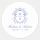 Elegante Blue Chinoiserie Crest Monogram Wedding Runder Aufkleber