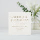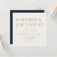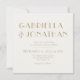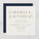 Ein elegantes minimalistisches Aussehen für Ihre Hochzeitseinladungen. Diese Vorderseite der Karte ist Creme mit einer modernen Goldtypografie. Personalisieren Sie Ihre wichtigen Details inklusive Name, Hochzeitstermin und Ort. Die Rückseite ist ein reichhaltiges Marineblau mit Ihren Initialen in Gold