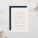 Diese elegante Hochzeitseinladung besticht durch ein elegantes modernes Design. Die Vorderseite ist eine Creme mit einer modernen Goldtypografie, während die Rückseite eine dunkelmarineblau mit Ihren Initialen in einer goldenen Typografie ist.