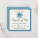 Niedliche, farbenfrohe, moderne Party Einladung mit pastellblauer Aquarell-Blume; Blumendesign. Der Platz lädt mit abgerundeten Ecken und Schriftart im Retro-Aquarell-Stil ein. Das ganze Jahr über für Frühjahr, Sommer, Herbst oder Winter neue Zuhause, Haus, Party für die Hauswärmung.