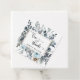 Elegante Gefallen Tag mit exquisitem blauem Aquarell Blumendesign. Verwendung moderner anmutiger Kalligraphie. Blumenstrauß mit Blume und Blättern in staubigen Blau-, Marine-, Weiß-, Salbei-, Grau- und Karamelltönen. Zurück mit dem gleichen Blumendesign und Bereich für Ihre persönliche Botschaft. Teil unserer Hochzeitskollektion "Rustic Blue Mountains".