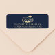 Eleganter dunkelblauer Abschluss Rücksendetikett mit der Bezeichnung "Klasse der" und das Jahr in einer hellen goldenen Illustration des Lorbeerkranzes mit einem Grad-Oberteil und Diplom und dem Namen und der Adresse des Absolventen in hellgoldfarbener moderner Typografie.