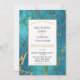 Eine elegante Hochzeitseinladung mit sattem, blau-grünem Marmor mit goldenen Rahmen und goldenem Rahmen.