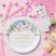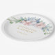 Elegante blaurosa Blume Hochzeitspapier-Teller. Geben Sie Ihre Daten ein, Sie können Schriftart, Position usw. individuell durch "weiter personalisieren" auswählen.