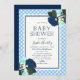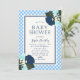 Elegante Blumen-Baby-Dusche mit blauen Rose, Minze und gelben Blumen, grünen Blätter mit weißer Mitte und blauen Rahmen und einem süßen, babyblauen Gingham-Hintergrund. Die Einladung hat eine blaue Rückseite. Es ist eine perfekte Einladung für eine Babydusche. Karo mehr Babydusche hier https://www.zazzle.com/rosewoodandcitrus/gifts?cg=196748758771183969?rf=238364477188679314 Persönliche Einladung mit Ihren Daten durch Ersetzen des Platzhaltertextes. Für weitere Optionen, wie zum Beispiel den Schriftart, die Textgröße/Schriftfarbe, den Abstand zwischen den Buchstaben zu ändern oder um den gebogenen Text zu kontrahieren oder zu erweitern, klicken Sie auf die Schaltfläche "Anpassen". *Bitte beachten Sie, dass das Zazzle-Wasserzeichen, das in der Zoomvorschau angezeigt wird, NICHT auf dem gedruckten Endprodukt erscheint. © Rosewood and Citrus