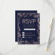 Elegante, moderne und schicke Imitate Rose Gold und trendige marineblaue Blumenmuster, RSVP Karten. Dieses klassische und raffinierte Design ist perfekt für jedes stilvolle und trendige Ereignis, einschließlich Hochzeiten und alltägliche Anlässe. Personalisieren Sie Ihre eigene Botschaft auf der Vorderseite sowie ein individuelles Monogramm auf der Rückseite. Das gesamte Foto-Druckdesign.