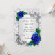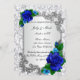 Hübsche blaue Rose und silberne Blattmuster. Überraschen Sie Ihre Freunde und Familie mit einer charmanten Einladung zu einer Verlobung, die klassischen Stil mit frischen, modernen Details verbindet, wenn Sie diese elegante Einladung senden. Diese schöne Einladungskarte ist personalisiert. Personalisieren Sie die Karte, indem Sie den Text in den vorn und hinten angegebenen Feldern ändern. Sie können Stil, Größe und Farbe des Schriftartes sowie Papiertyp und Stil ändern.