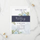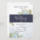Moderne und elegante blaue Rose, grüne Farne und Blätter und blaue Streifen
