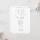 Diese dustig-blau-eleganten Skripte mit doppelseitigen Sitzplakatkarten-Tischnummern sind perfekt für alle Feiern. Entwickelt von Thisisnotme©
