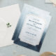 Eine elegante, blaue Hochzeitseinladung, die für jede Jahreszeit großartig ist. Modernes und elegantes Design.